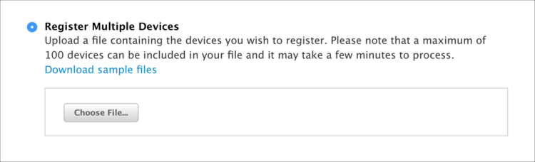 在“Register multiple devices”(注册多台设备) 下面,点按“Choose File”(选取文件)。