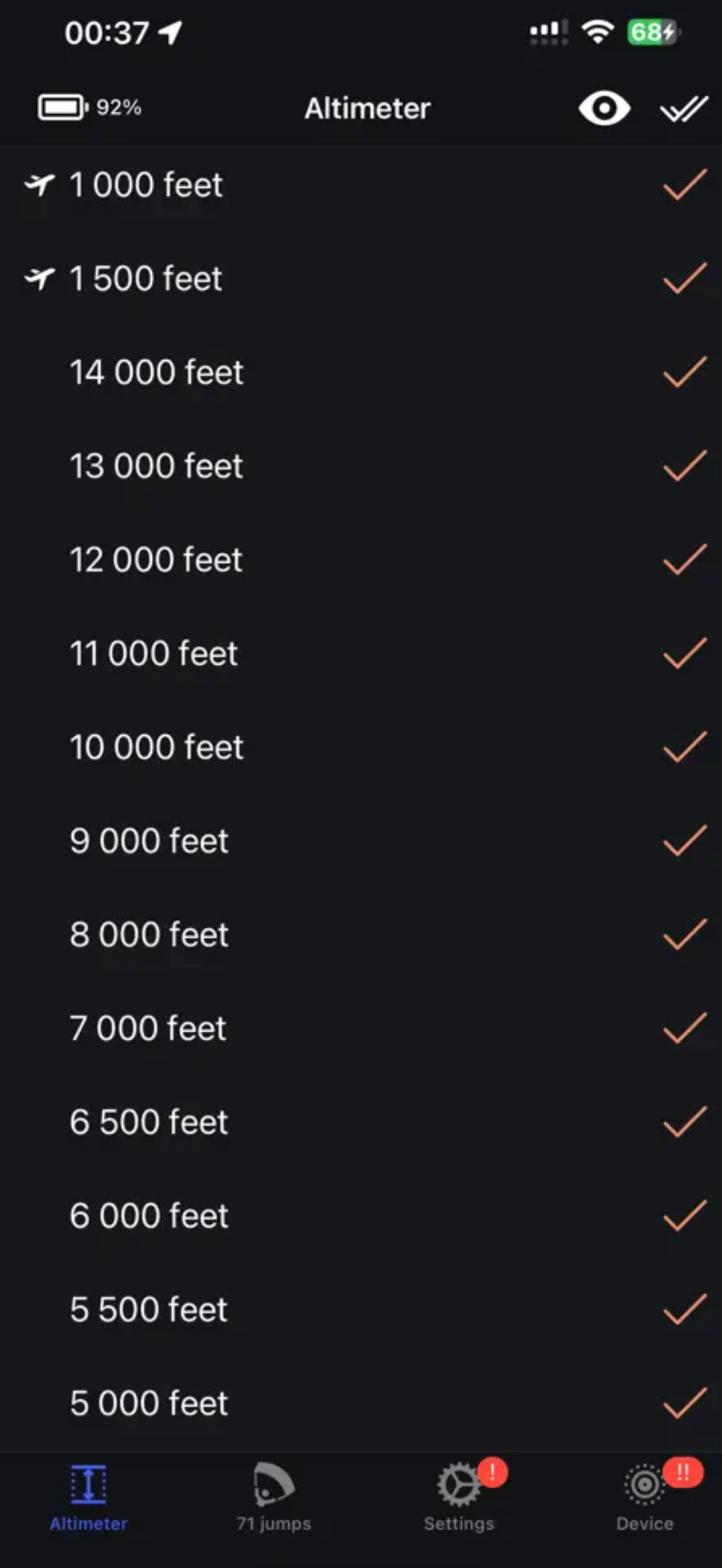 A similar app already exists (VOG-Altimeter) where altitudes are enabled/disabled....