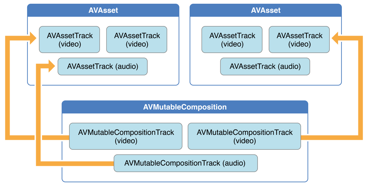 Where possible, you should have only one composition track for each media type. This unification of compatible asset tracks leads to a minimal amount of resource usage. When presenting media data serially, you should place any media data of the same type on the same composition track. You can query a mutable composition to find out if there are any composition tracks compatible with your desired asset track: