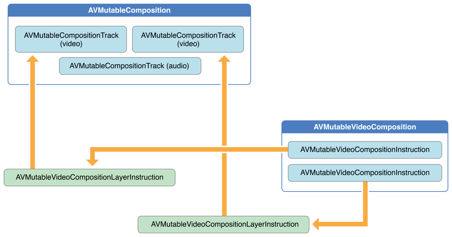 All video compositions must also have an array of AVVideoCompositionInstruction objects containing at least one video composition instruction. You use the AVMutableVideoCompositionInstruction class to create your own video composition instructions. Using video composition instructions, you can modify the composition’s background color, specify whether post processing is needed or apply layer instructions.