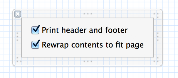 When you run a print operation, your accessory view is available for viewing in the Print panel. Figure 5-2 shows the accessory view for the TextEdit sample code project. Figure 5-1 shows the view as it appears in Interface Builder.