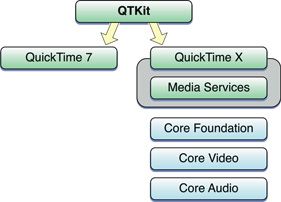 Figure 3-1  QTKit media services provided through QuickTime X and QuickTime 7