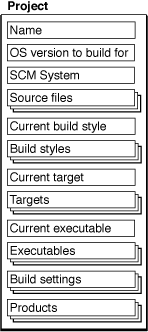 To develop a product using Xcode, you must understand the key components of your project. Figure 2-1 shows a simplified representation of a project and its essential pieces.
