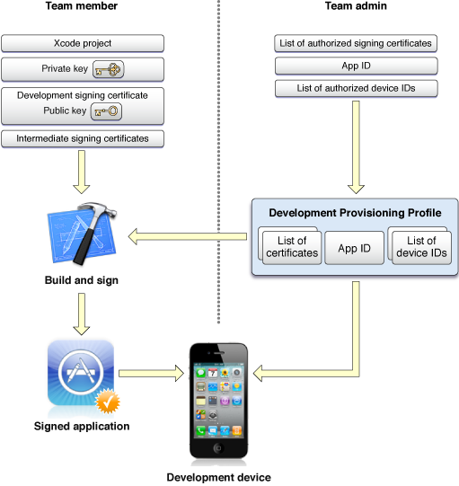When you are ready to distribute an iOS or Mac app, you not only need the distribution signing certificate created when you organized your team, you also need a distribution profile that authorizes the app to run. If you are developing an iOS app, signing the app and distributing it with the appropriate profile is the only way to install the app on a device not specially configured for development.