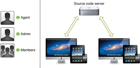 Each person on the development team has a unique Apple ID, an account used by the developer programs to authenticate that person. Further, access privileges can be configured separately for each person. This flexibility allows your team to restrict critical tasks, such as publishing the app on the App Store, to a small subset of its participants.