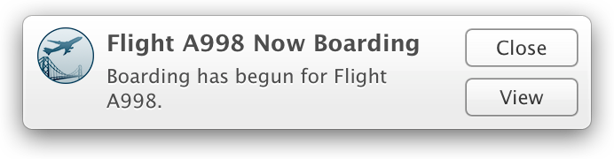 | Required. The title of the notification. (“Flight A998 Now Boarding” in Figure 2-3.) |