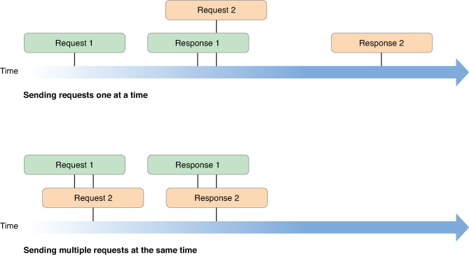 If you use NSURLConnection in your iOS app, you can easily get a speedup by enabling HTTP pipelining. When pipelining is enabled, your connection automatically sends multiple HTTP requests simultaneously. Enable pipelining by calling the setHTTPShouldUsePipelining: method on the NSMutableURLRequest object you provide to your connection.