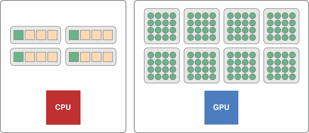 If you pass simple floats into a kernel, the kernel does a scalar addition; operating on one data element at a time. As illustrated in Figure 13-1, if you pass a scalar float to a GPU, the GPU becomes fully engaged in processing the data. If you pass this same float to a CPU, only one quarter of the vector width of the processing element in each core is used.