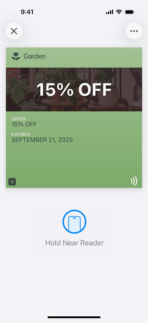 Apple Wallet provides a convenient way to organize and use rewards cards, boarding passes, tickets, gift cards, and more in one place. By working with Apple Wallet, you can provide relevant information the moment it’s needed and present passes based on location on iPhone, iPod touch, and Apple Watch.